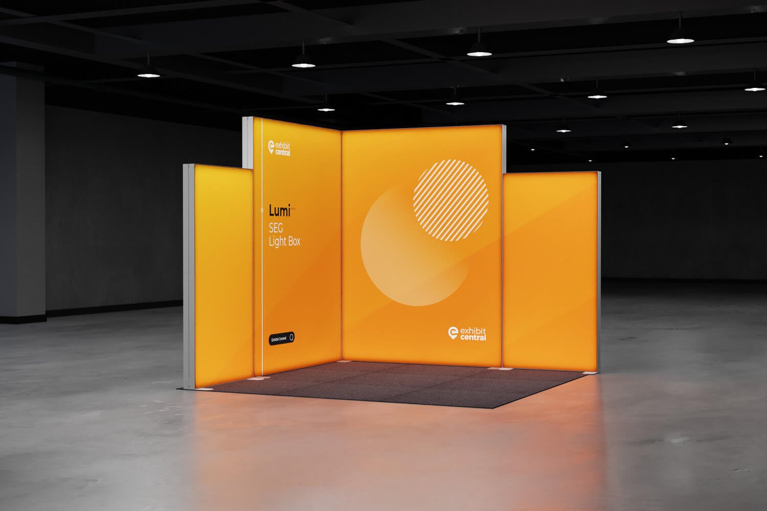 Lightweight, reusable and customisable, the Lumi SEG Lightbox Exhibition Stand – 3 x 3m – Epping helps boost your brand presence with sleek, professional trade show displays, custom displays and more.